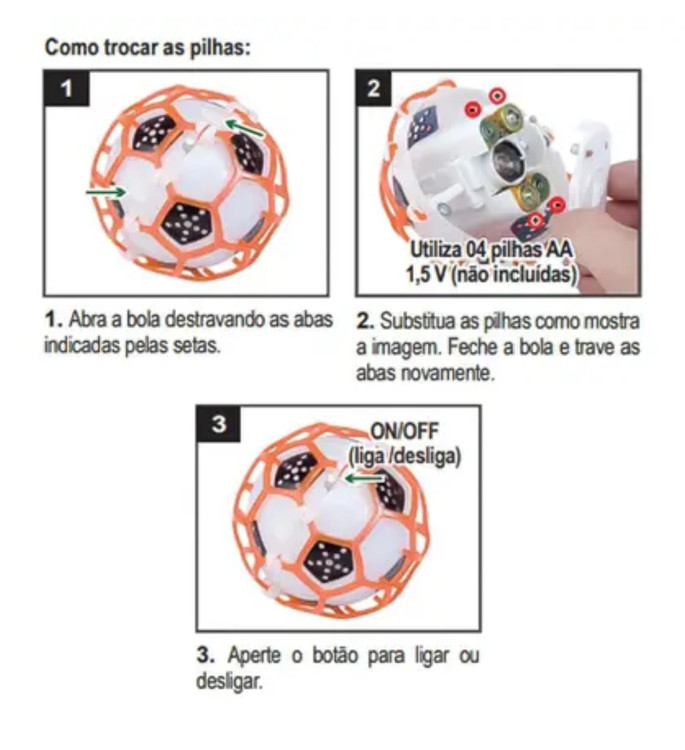 4 باتری قلمی مصرف می کند که با باز کردن چفت های توپ می توان از طریق داخل توپ باتری ها را تعویض کنید