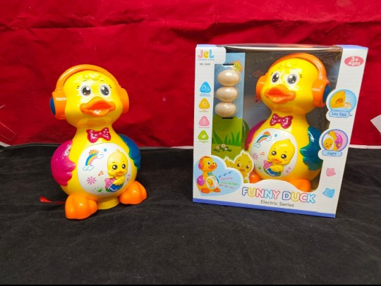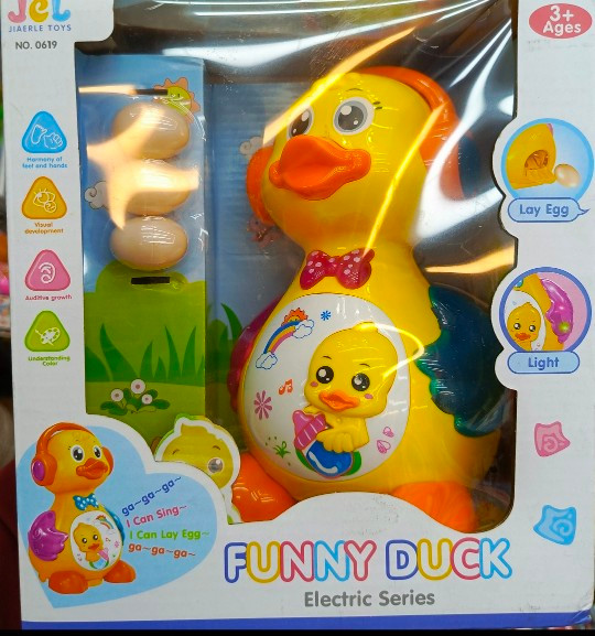 اردک تخم گذار یک عروسک موزیکال جالب و زیبا دارای 3 عدد تخم مرغ پلاستیکی است که از در پشت سر اردک که مخزنی برای جا گذاری تخم هاست ، داخل اسباب بازی قرار میگیرد. با فشردن دکمه روی بدنه ی آن فرآیند تخم گذاری آغاز می شود. تخم گذاری همراه با موزیک انجام میشود.اسباب بازی هایی که توانایی تولید صدا را داشته باشند، محبوبیت بیشتری در بین بچه ها دارند. این مدل اسباب بازی ها توجه کودکان را به خود جلب کرده و ساعتی آن ها را سرگرم میکند. این اردک تخم گذار زیبا میتواند با تخم گذاری و ایجاد نور و صدا یک روز خوب را به کودکان شما هدیه بدهد .این اردک موزیکال با ۳ عدد باتری قلمی ۱٫۵ ولت کار میکند که داخل بسته بندی موجود نمیباشد.